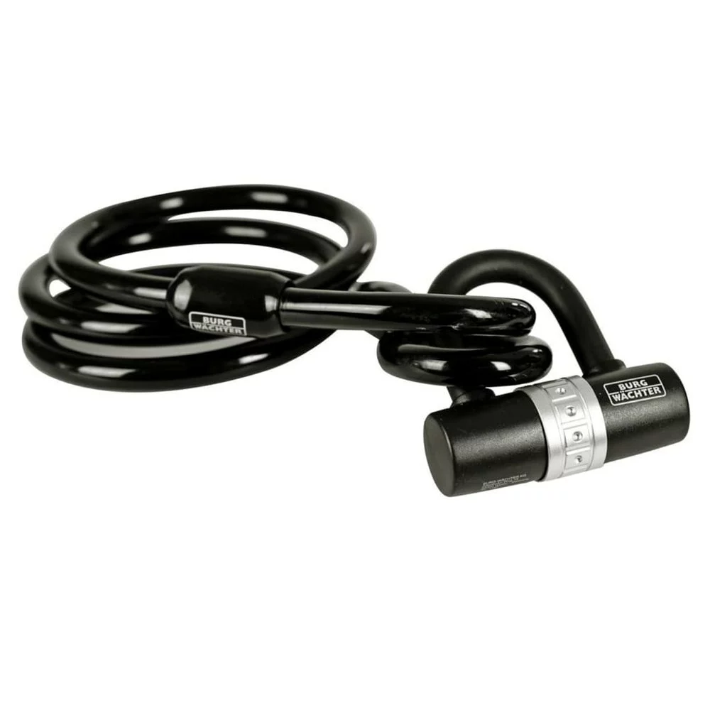 This BURG-WÄCHTER security lock set is ideal for securing your bike or motorbike. The security set made of black synthetic material and steel features one 150 cm loop rope with eyelets 15 mm thick, one strong U-bar lock and 2 keys for the U-bar lock. All your things are now safe against “quick removal” and theft. Colour:Black Material:Synthetic and steel Length: 150 cm Loop rope thickness: 15 mm For securing your bike or motorbike Delivery includes : 1 x loop rope with eyelets 1 x strong U-bar lock 2 x lock key