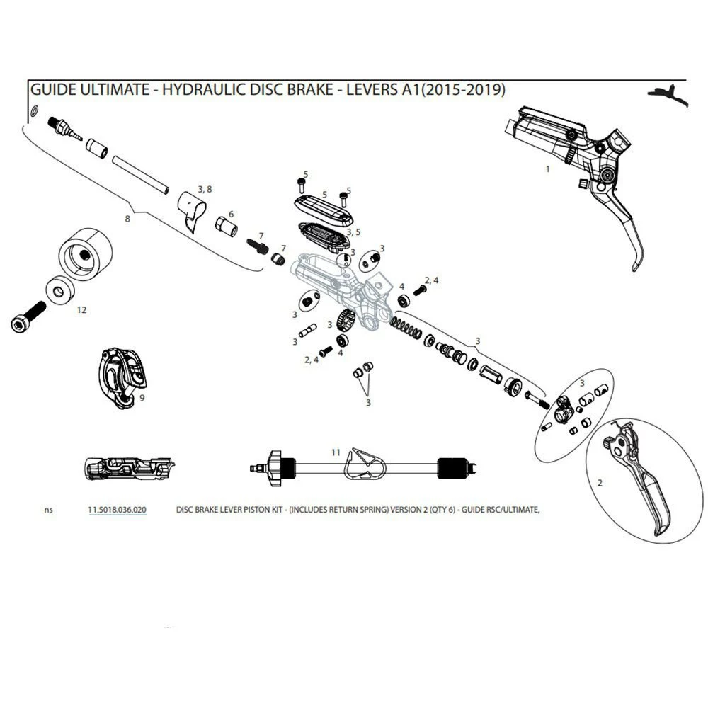 DISC BRAKE LEVER PISTON KIT – (INCLUDES RETURN SPRING) VERSION 2 (QTY 6) – GUIDE RSC/ULTIMATE, HYDRAULIC LINES & FITTING